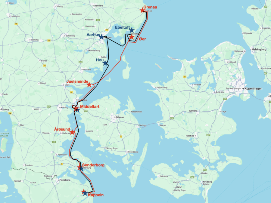 Juelsminde (55°42,9'N 010°01,1'E) 24,9 sm 07:45-14:00 Uhr